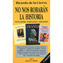 En este libro el autor, reputado historiador, elige cuatro temas para mostrarnos las diversas tergiversaciones que se hace de la Historia; estos temas son: Ante los XX años de Franco; Inglaterra y España, dos grandes coronas en peligro; ¿Qué se hizo del rey Don Juan?; y El club comunista del plagio debe ir a la Academia: los sillones de Vázquez Montalbán y Francisco Pérez Martínez llamado Umbral. Editorial Fénix. Autor: Ricardo de la Cierva, 388 páginas, tapa blanda, formato 210x125 mm y 14 ilustraciones B/N.